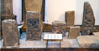 Our fragments were found lying around the churchyard, possibly victims of damage done during the Reformation. Some of them were used as “fillers-in” in the outside walls of the south and north aisles when built during the early fifteenth century; the Dragon cross piece was found in the chancel arch during the 1850’s internal renovations.