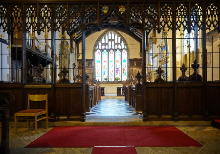 If only they could talk, what tales they could tell. It seems to be traditional that choirboys should carve their initials where they sat. A few years ago, a lady occupied one of the choir stalls during the Christingle service and to her surprise saw her son’s initials. He owned up and was duly ‘reprimanded’. He was by then in his mid-forties! The stalls match the screen and were donated by Peter Garnett in memory of his mother. Made in 1893 the intricate carving on the pew ends is well worth a look. We are told that each one is different from all the others. What artistry.!